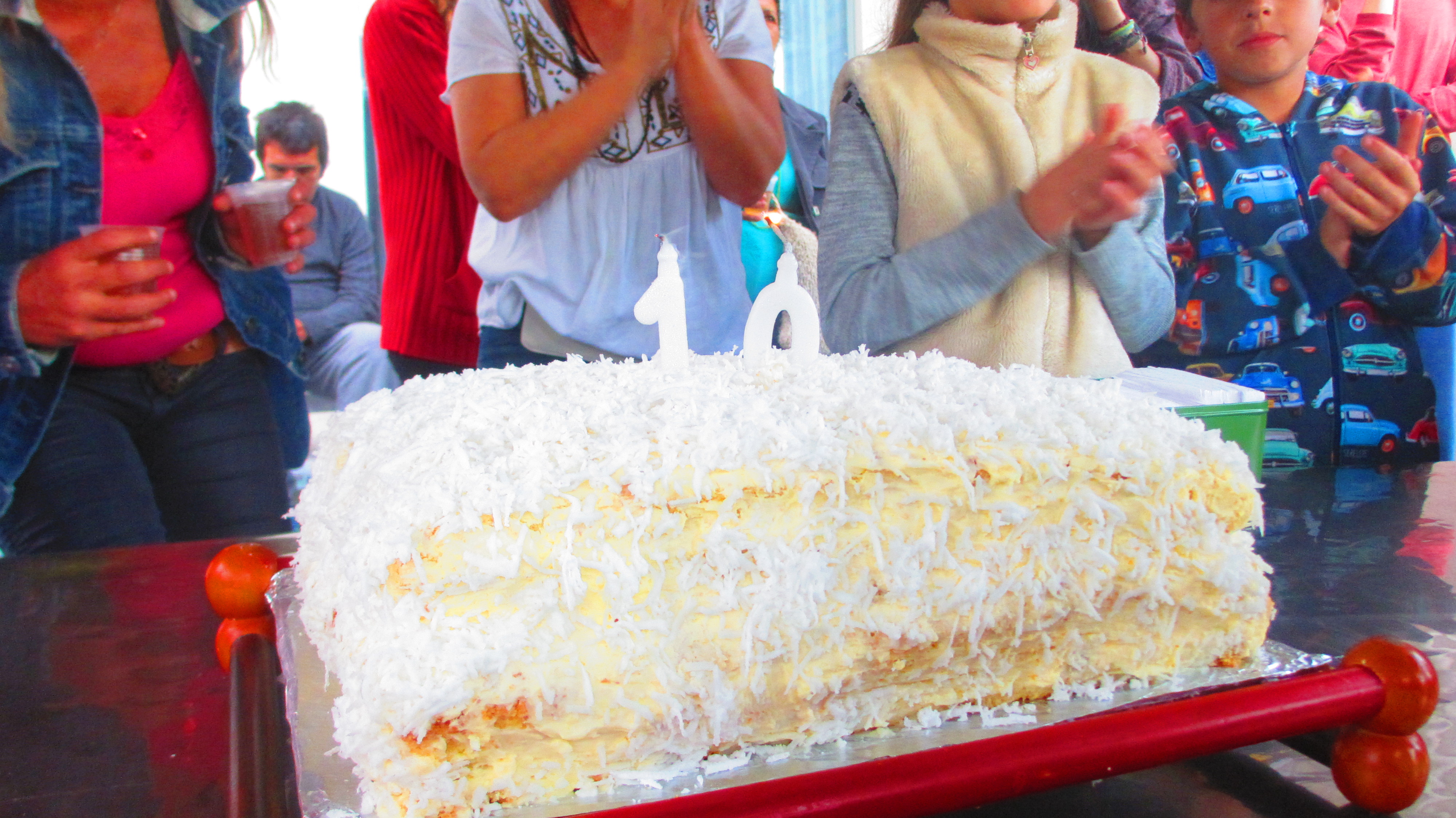 Para finalizar a comemoração um lanche coletivo para todes e os parabéns com o já tradicional bolo de abacaxi com coco.