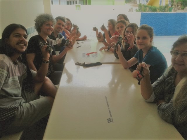 No dia 06 de outubro os integrantes da Trupitan, Dimi Camorlinga e Esha Prem retornaram a Escola Estadual Januária Teixeira da Rocha, no Campeche para realizar atividades com as educadoras da escola. A oficina “O brinquedo e o brincar: construindo a brincadeira” buscou estimular o estado do brincar no ensino da construção de brinquedos artesanais e de brincadeiras que facilmente poderão ser realizadas em sala de aula juntos aos alunos e alunas.